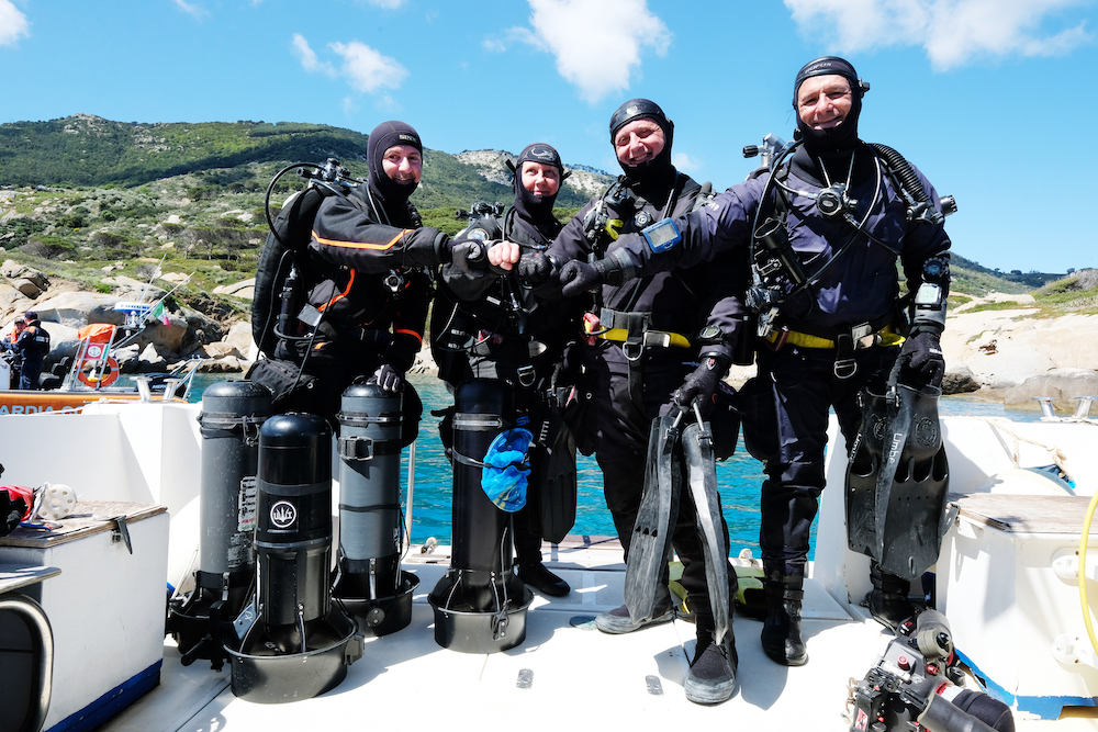 Subacquei di esplorazione: Gianmaria Vettore, Tiziana Faggionato, Graziano Lanini e Umberto Olivieri